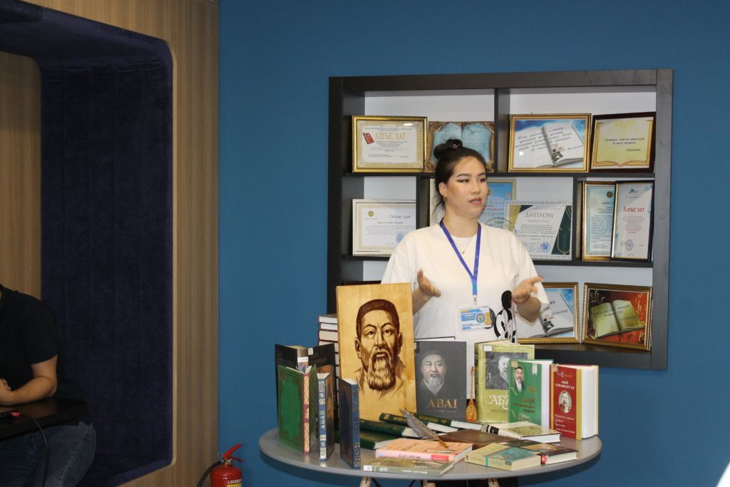 Абай Құнанбайұлы ғұлама ғалым, ойшыл ақын, ағартушы ұстаз ретінде ұлтымыздың тұғыры биік мақтанышы. Жастар ақынның шығармаларымен танысып, өлеңдерін оқыды. Викториналық сұрақтарға жауап берді. Әсем әндер орындалды. Тақырыпқа сай кітап көрмесі ұйымдастырылып, шолу жасалды.