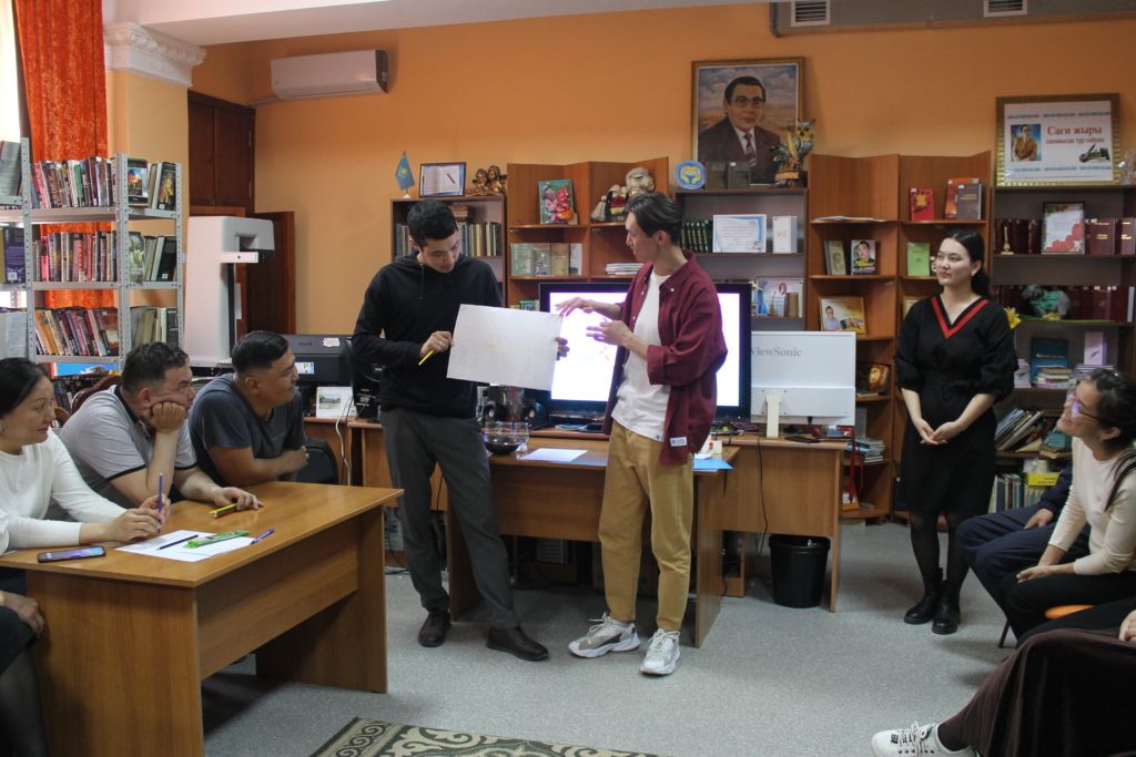 Шара барысында қызықты ақпараттармен танысып, «Алақай» қуыршақ театрының қызметкерлері мен кітапхана қызметкерлер болып топқа бөлініп, сынға түсті. Сайыс 7 кезеңнен тұрады. Бірінші кезең бойынша қатысушылар ұяшықтарды таңдап, тапсырмаларды орындады. Ұяшықтарда 2000 жылға дейін шыққан телехикаялар, әндер жасырылған болатын.2. Математикалық есептер. 3. Топ болып сурет салу. 4. Шар ойыны, «Адам-зат», «Шар», «Мен ақылдымын», «Суды төкпе» сияқты қызықты ойындарды ойнады. Сайысқа қатысушылар барлық тапсырмаларды орындап, шара көтерінкі көңіл күй мен түрлі эмоцияларға толы болды. Алған ұпайлары бойынша жеңімпаздарды кітапхана директоры Гүлжайнар Нәренқызы марапаттап, сыйлықтар табыстады. Іс-шара қызықты өтті.