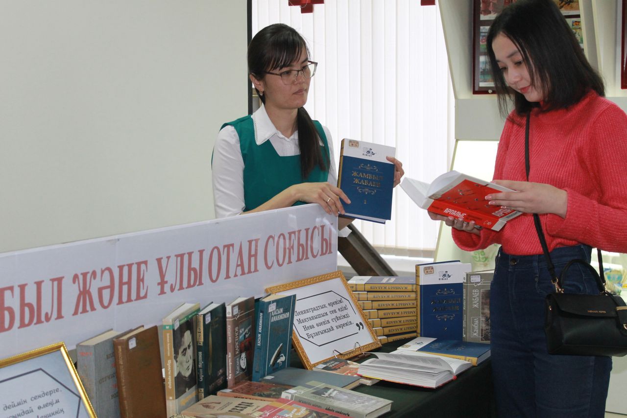 Шара барысында отты жылдарды жырларымен жауынгерлерді, халықты рухтандырған ақын Жамбыл Жабаевтың өлеңдері оқылып, Ж.Жабаев атындағы әдеби мемориалды музейінің дайындаған бейнеролигі мен музей экспозициясы таныстырылды. Сонымен қатар кең көлемдегі «Жамбыл және Ұлы Отан соғысы» атты кітап көрмесі ұйымдастырылып, көрмеге Айнұр Нұрсайынқызы библиографиялық шолу жасады.