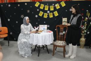 Кешке Ақтөбе облыстық Қазақстан халқы ассамблеясы жанындағы аналар кеңесінің төрайымы Калиева Жұмабике Шамшединқызы мен «Ай Қаракөз» брендінің негізін қалаушысы, ұстаз Қайралапова Жайнагүл Нагиқызы, мектеп оқушылары, оқырмандар қатысты.