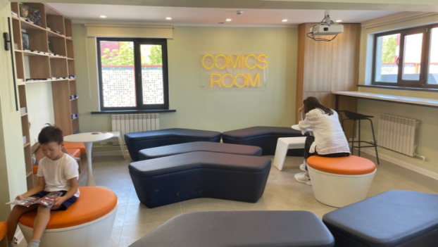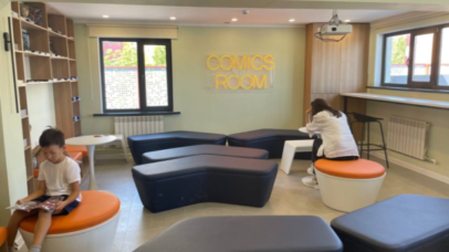 Бұл залда суретті кітаптарға қызығушылығы жоғары жасөспірімдер мен балаларға арналған комикс кітаптар топтастырылған. Кітап ішіндегі шытырманды оқиғалар суреті, жеңіл мәтіндері әр оқырманның кітапқа деген қызығушылығын оятары сөзсіз. Арнайы интерактивті тақтамен жабдықталған бұл залда әр түрлі кретивті шаралар, интеллектуалды ойындар өткізіледі. Балалар кітап оқып, ойын ойнап демалысын пайдалы өткізеді.