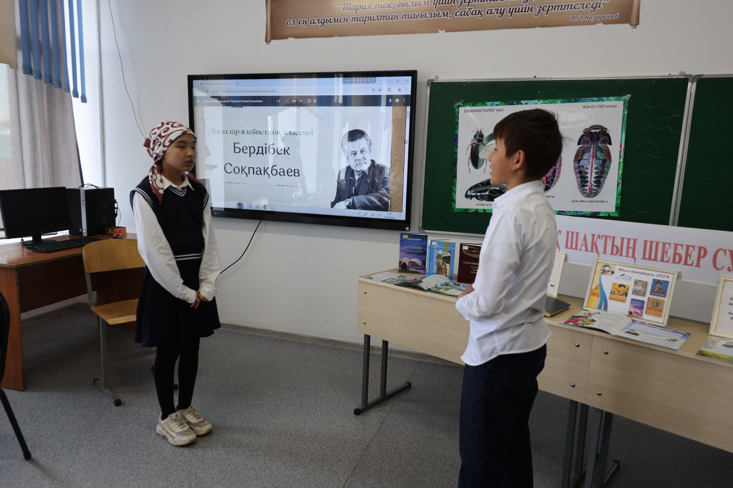 Шара барысында кітапханашы Азатгүл Жасұланқызы жазушы Бердібек Соқпақбаевтың өмірі мен шығармашылығы туралы ақпарат берді. 6 «А»класс оқушылары Жанерке Исатаева, Нұрбол Закерия, Самат Дияр мен Ахметқан Сұлтан қаламгердің өлеңдерін оқып, «Менің атым Қожа» шығармасынан көрініс қойды. Сергіту сәтінде оқушыларға «Kahoot» ойыны ойнатылды.