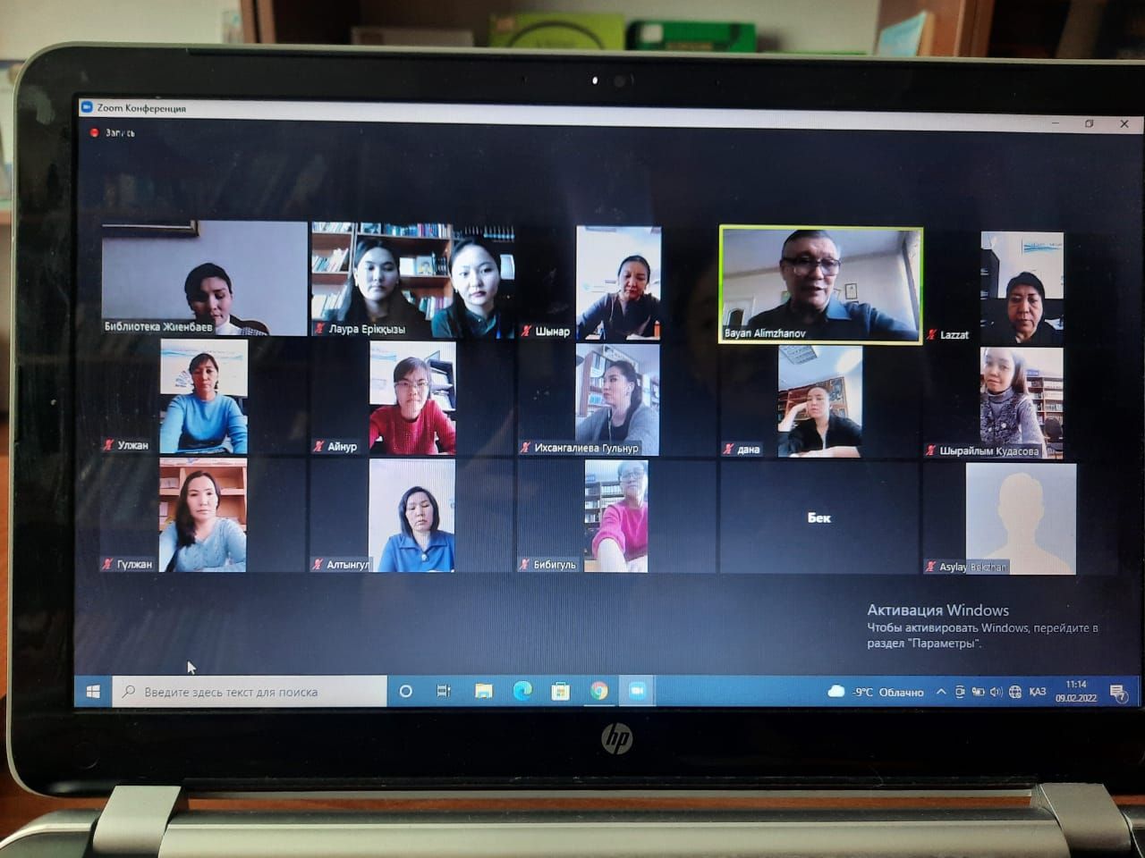 9 февраля 2022 года в 11.00 часов областная юношеская библиотека им.С.Жиенбаева на платформе ZOOM провела беседу с поэтом айтыса, драматургом, писателем, жыршы-жырау, манасши, заслуженным деятелем Казахстана Баянгали Алимжановым на тему «Білімдіден шыққан сөз».