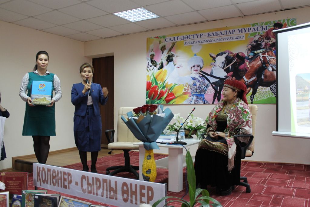 В ходе мероприятия была организована книжная выставка на тему «Қолөнер - сырлы өнер», Гульнур Ергеновна провела библиографический обзор выставки. Была показана биография этнографа Бұлбұл Кәпқызы, видео о достигнутых достижениях, слайд.