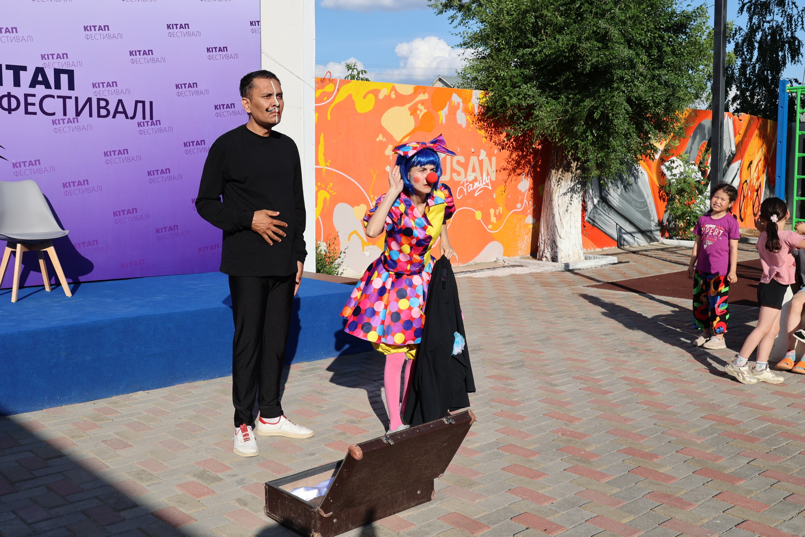 Іс-шара барысында кітапхана оқырмандары мен жастары арасында «Ребус-ТIME», «Dynamite», «Сегізаяқ», «Yes.or.no» интеллектуалды экспресс-ойындары ойнатылып, көңілді караокеде ән айтылды. Шараға қызығушылық танытқан жастар өз өнерлерін көрсетті. Шарада «Almaz.Games Schol» 3D моделдеу мектеп-студиясының және дизайнер Дильяра Айтмухамбетованың шеберлік сағаты өтті. Кітап фестиваліне келген көрермендер «Мы вас любим» халықтық клоунада театрының қойылымын тамашалады. Сонымен қатар «Баламен бақытты бар әлем», «Сағи лирикасы сурет әлемінде», «Ердім бір сиқыр қаламға…», «Миға шабуыл» кітап көрмелерін ұйымдастырды. Кітап көрмесіне кітапхана қорында жинақталған ақын-жазушылардың шығармалары, мерзімді басылымдар бетінде жарияланған мақалалар және психологиялық кітаптар қойылып, Жанат Нұрымқызы библиографиялық шолу жасады. Сонымен бірге «10 SAUSAQ» қолөнер клубы мүшелерінің дайындаған бұйымдары қойылды.