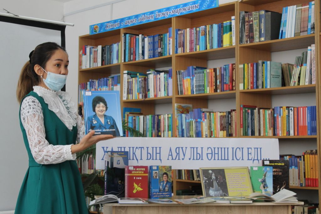 Библиотекарь Шырайлым Оралбаевна представила читателям информацию о жизненном пути известнейшей певицы. Было рассказано о ее творчестве, о концертной деятельности в годы Великой Отечественной войны. Певица покорила своим голосом миллионы людей и была удостоена множества наград.