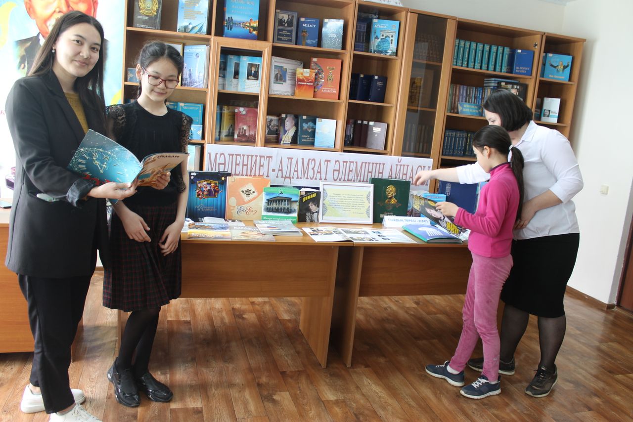 В ходе мероприятия Азатгуль Жасулановна познакомила с книгами, представленными из произведений искусства, которые служили сфере культуры нашего края.
