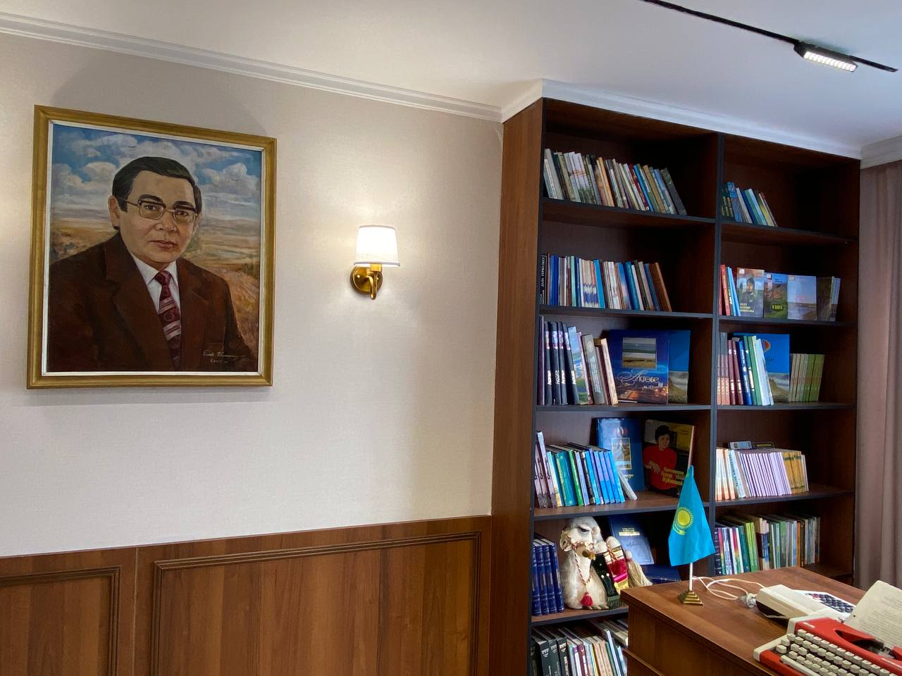 Музейде ақын Сағи Жиенбаевтың Алматы қаласындағы өзі тұрған үйінен көшіріліп акелінген жеке кітапханасы бар. Музейде ақынның өзі қолданған жазу машинасы, фотошежірелері бар. «Ердім бір сиқыр қаламға» атты өзінің туындыларынан кітап көрмесі жасақталған. Көрмеде ақынның көзі тірісінде шыққан 3 томдық өлеңдер жинағы, «Тарту», «Дала гүлі», «Теңіз сыры», «Таң алдында», «Қайырлы таң», «Ақ толқын», «Киік», «Есімде сол бір көктем», «Әлия», «Гүлдәурен», «Оймауытым», «Бозторғай», «Іңкәр дүние» және басқа өмір туралы, табиғат туралы, өмірдің өткелең өрісі туралы ой-толғауларға толы өлең кітаптары топтастырылды. Сонымен қатар музейде өлкемізден шыққан ақын-жазуышыларымыздың әдебиеттері жинақталған.
