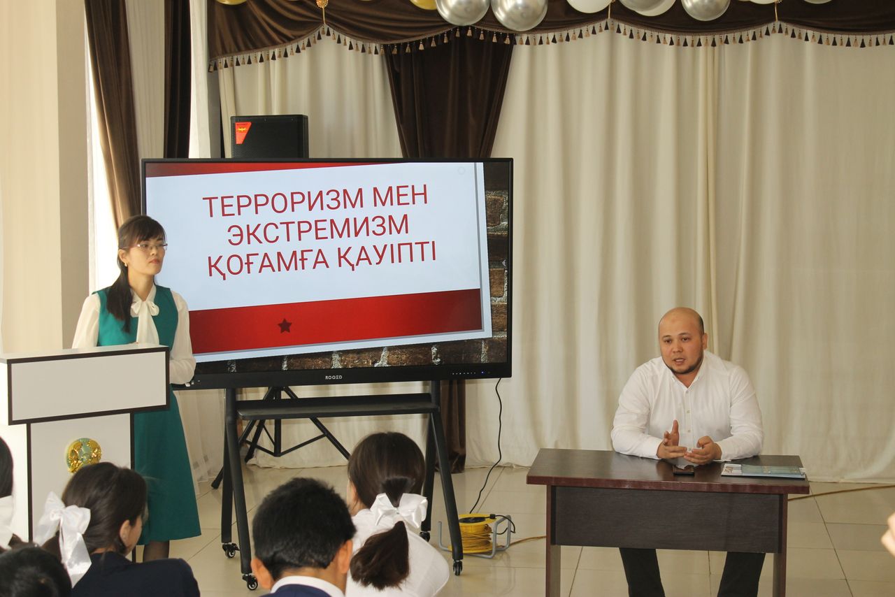 В ходе мероприятия специалист-теолог Нурлан Адильханович обсудил причины распространения экстремизма, терроризма и основные цели и признаки общественно опасных экстремистских группировок. На мероприятии учащиеся Алтынай Шурен, Айгерим Садирбаева, Адеми Кенжетаева, Саян Карагойшин высказали свое мнение и проявили активность в связи с религиозным экстремизмом.