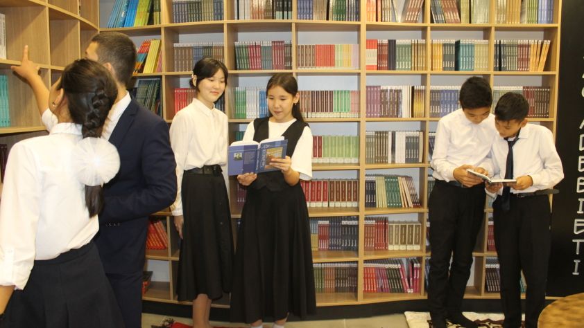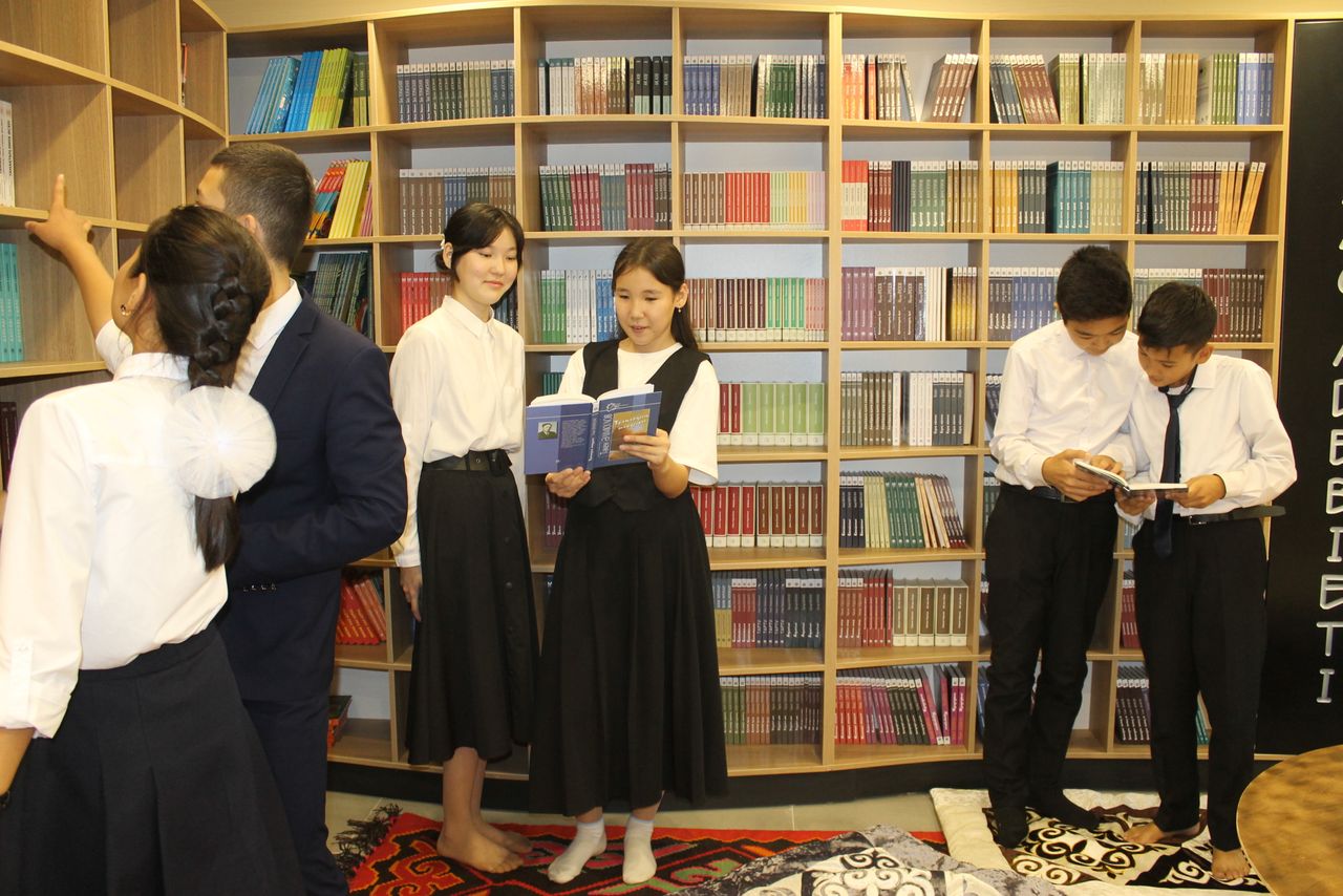 В кабинете, оформленной казахским орнаментом в национальном стиле, созданы комфортные условия для читателя, собрана казахская художественная литература. Проводятся уроки казахского языка. Также молодежь занимается научно-исследовательской работой. Пройдут песенные (жыр) часы, кружки домбры.