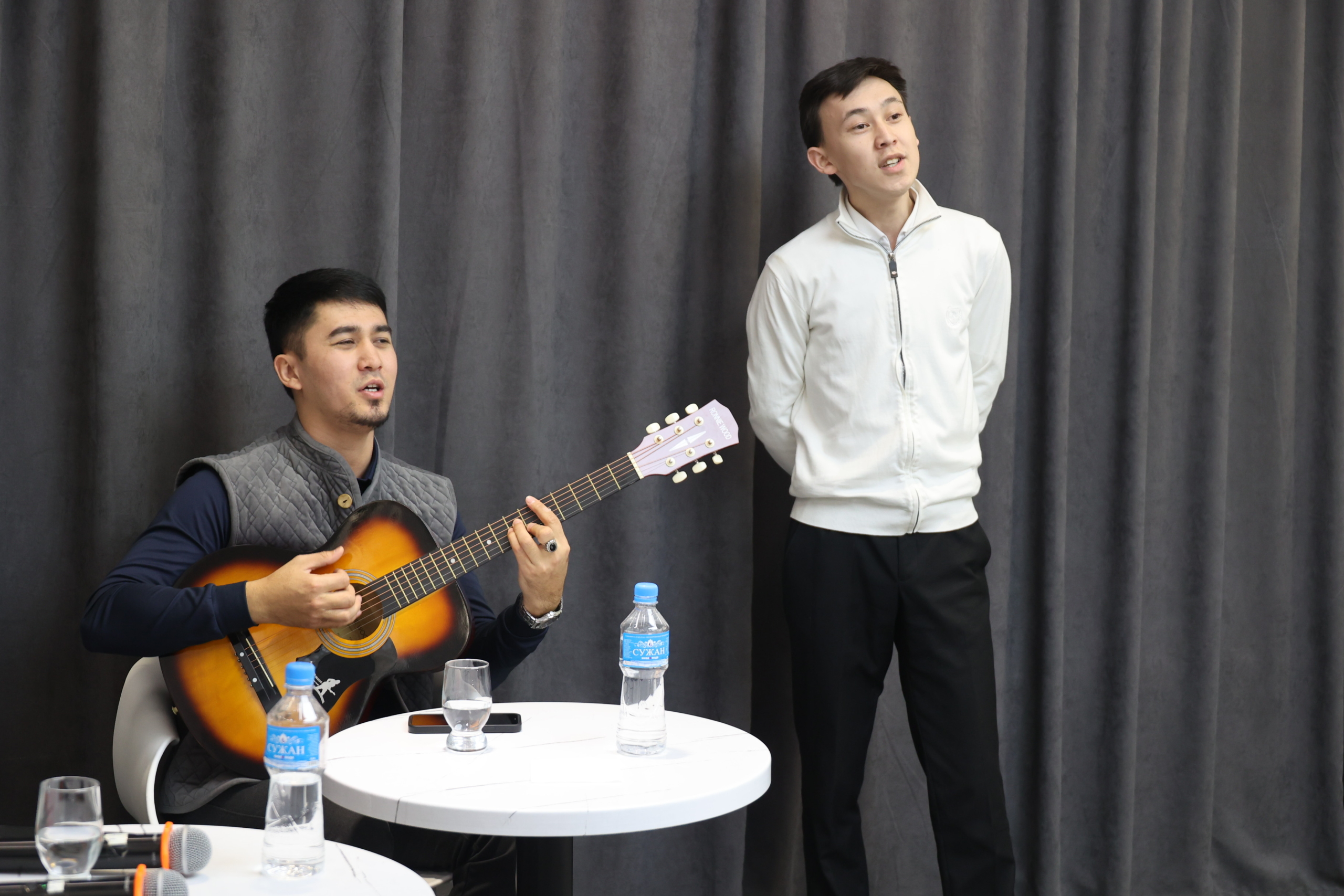 В рамках интервью Нуркен и Оразбек, сопровождавшие молодежь в искусстве, рассказали о своем жизненном пути и поделились интересными воспоминаниями. Кроме того, студенты задавали свои вопросы и обменивались мнениями. С пришедшими на встречу гостями проводились различные игры. Нуркен Жалгасбай исполнил «Сынақ», «Гүл сезім» и другие песни. В завершение мероприятия заведующая методическим отделом библиотеки Алтынгуль Аскаровна поблагодарила за душевный вечер и вручила памятный подарок. Студенты колледжа и читатели выразили признательность и восхищение произведениями, исполненными нашими артистами.
